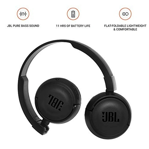 JBL T460BT by Harman, Wireless On Ear Headphones with Mic, Pure Bass, Portable, Lightweight & Flat Foldable, Voice Assistant Support for Mobiles (Black)